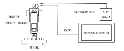 使用手持電子式推拉力計(jì)的標(biāo)準(zhǔn)機(jī)器構(gòu)成和連接方式如下所示: