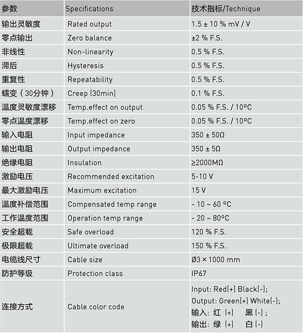 特點和用途不銹鋼材料,低外形,采用金屬箔式應變片技術。主要用于推拉力計,料斗秤,工業測量系統。