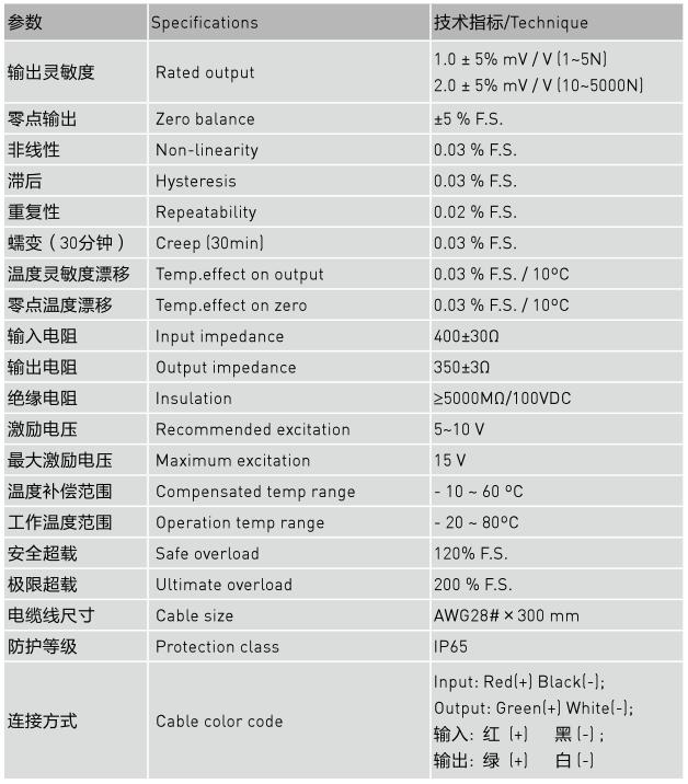 鋁合金或合金鋼材料,采用金屬箔式應變片技術,帶過載保護。